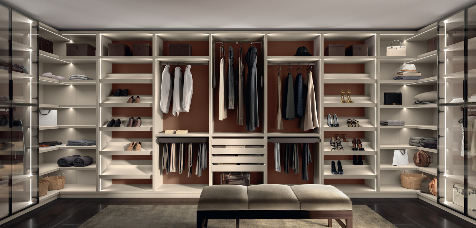In all types of wardrobes, we furnish individualized, creative space-saving solutions. MOF allows you to pick from our unique selection of sliding or openable modular wardrobes.